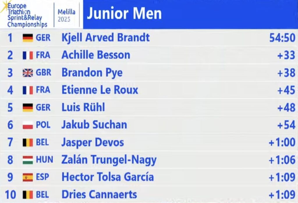 Das Unfassbare ist wahr geworden: Kjell ist Junioren-Europameister 2025! Und wie: Mit 33 Sekunden Vorsprung holt er sich Gold vor dem Franzosen Achille Besson und dem Briten Brandon Pye.